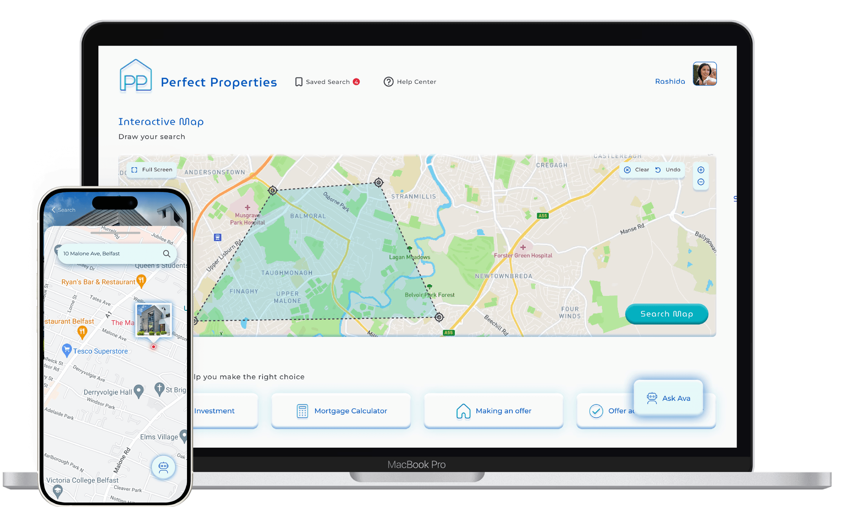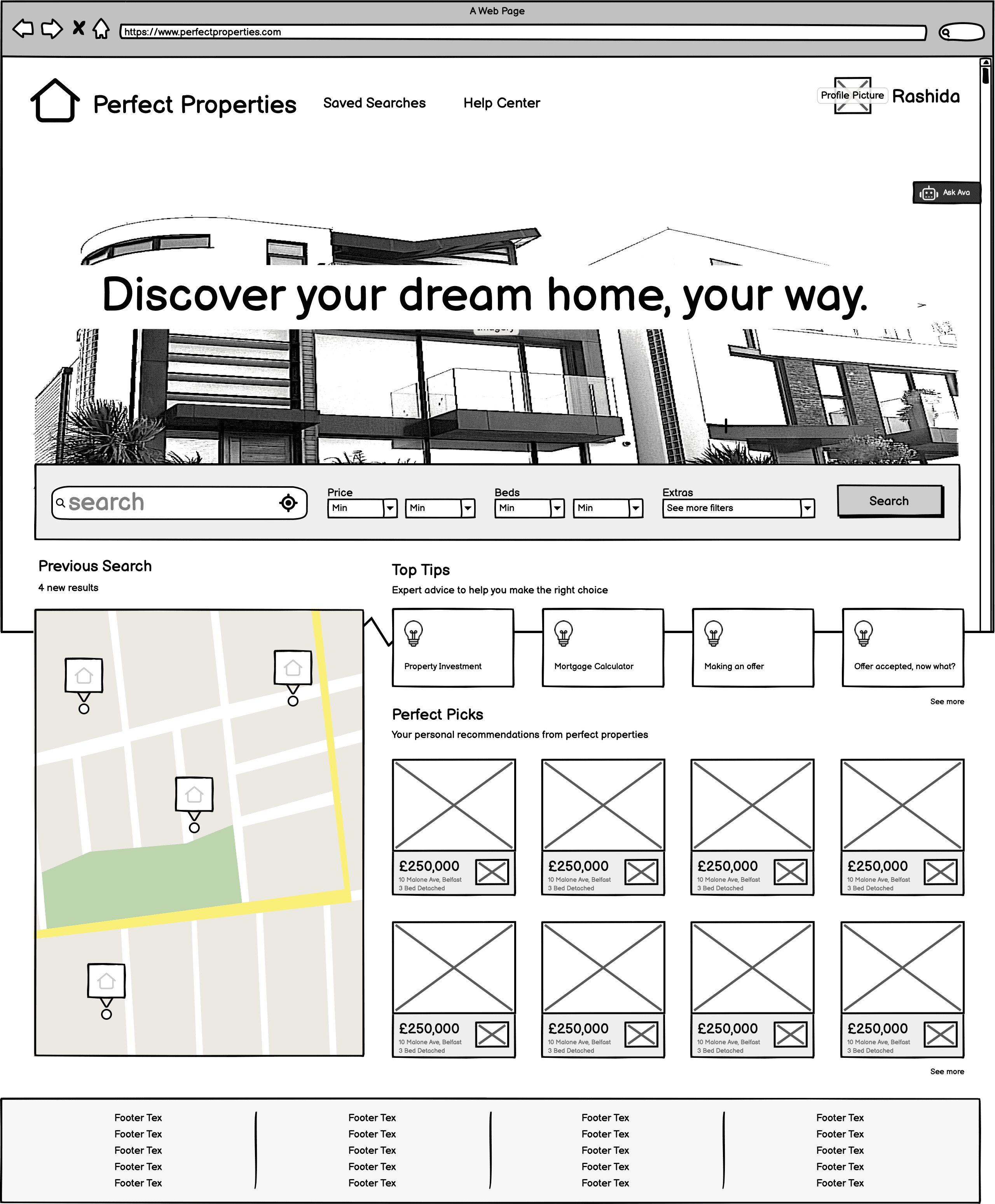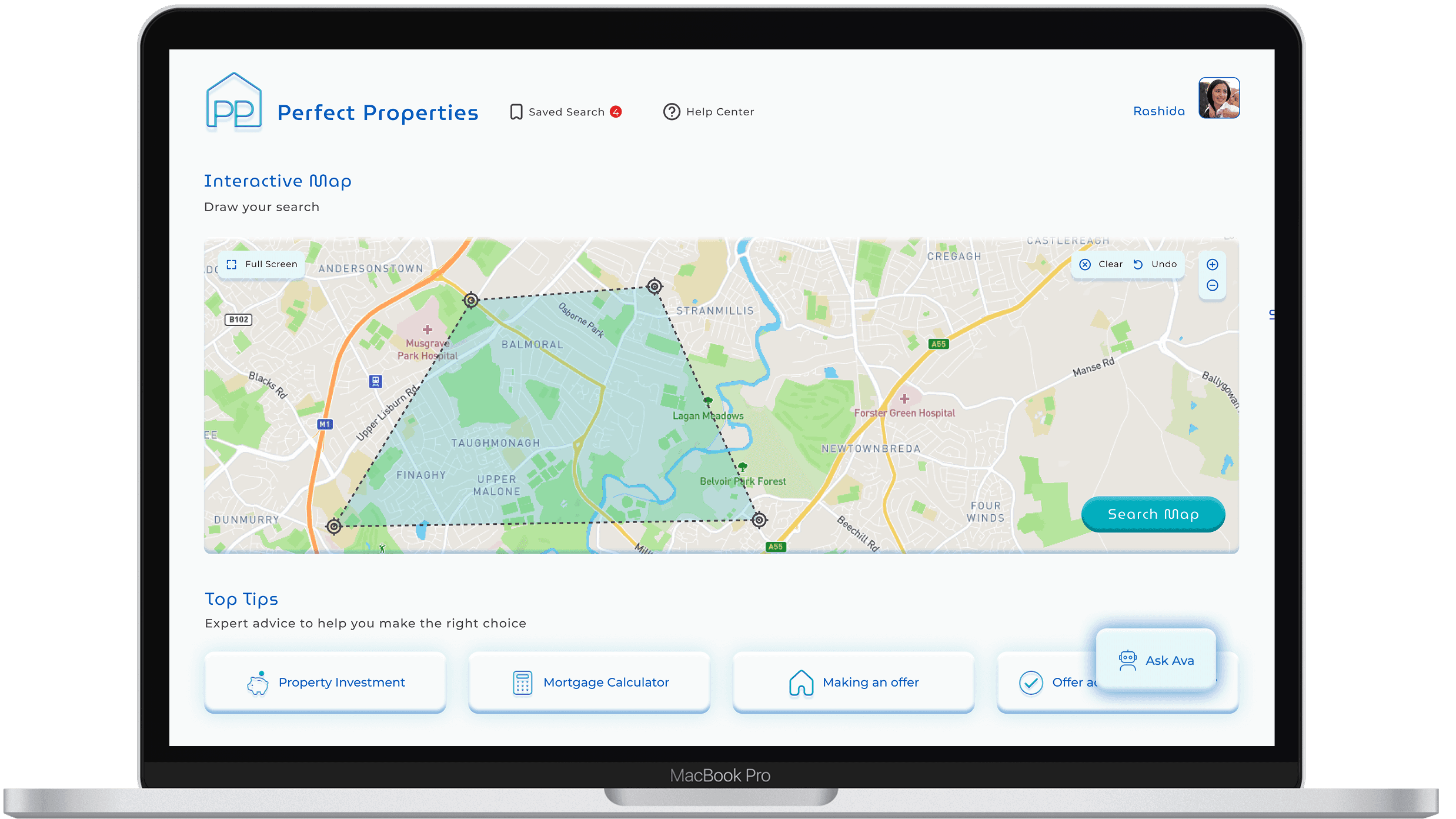 First time property investors want to make smart decisions but property searches are often overwhelming and leave people with unanswered questions . Perfect Properties reimagines the process through a user-first lens with clean design, AI support and an interactive map for a visual search experience.