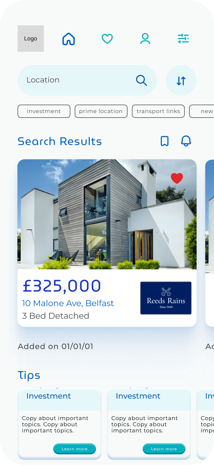 I started adding each feature to the homepage and soon, the layout became a war zone between branding and usability. A card sorting workshop would have helped me prioritise the structure but unfortunately time constraints meant this wasn't possible. Desktop traffic is strong for property buyers and careful consideration was required to strike the correct balance.